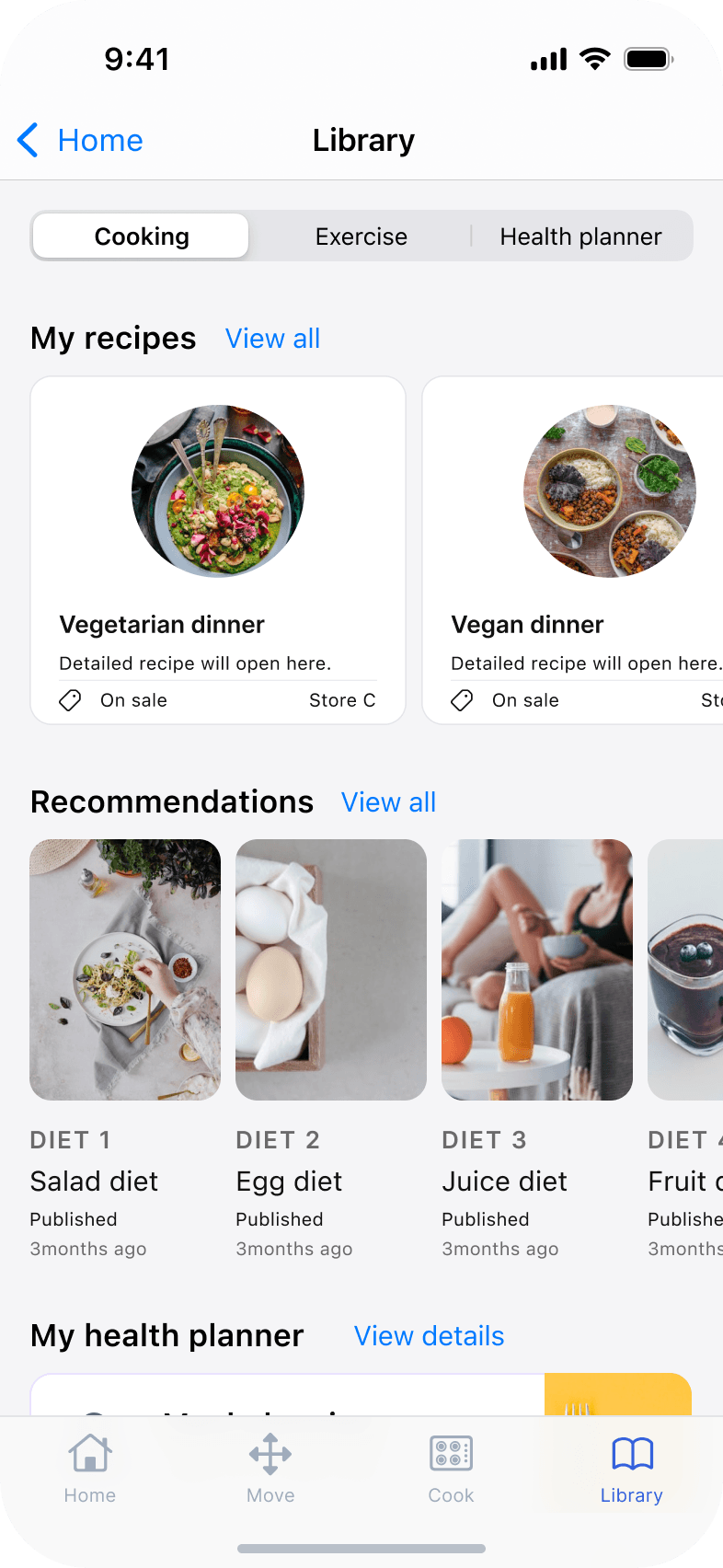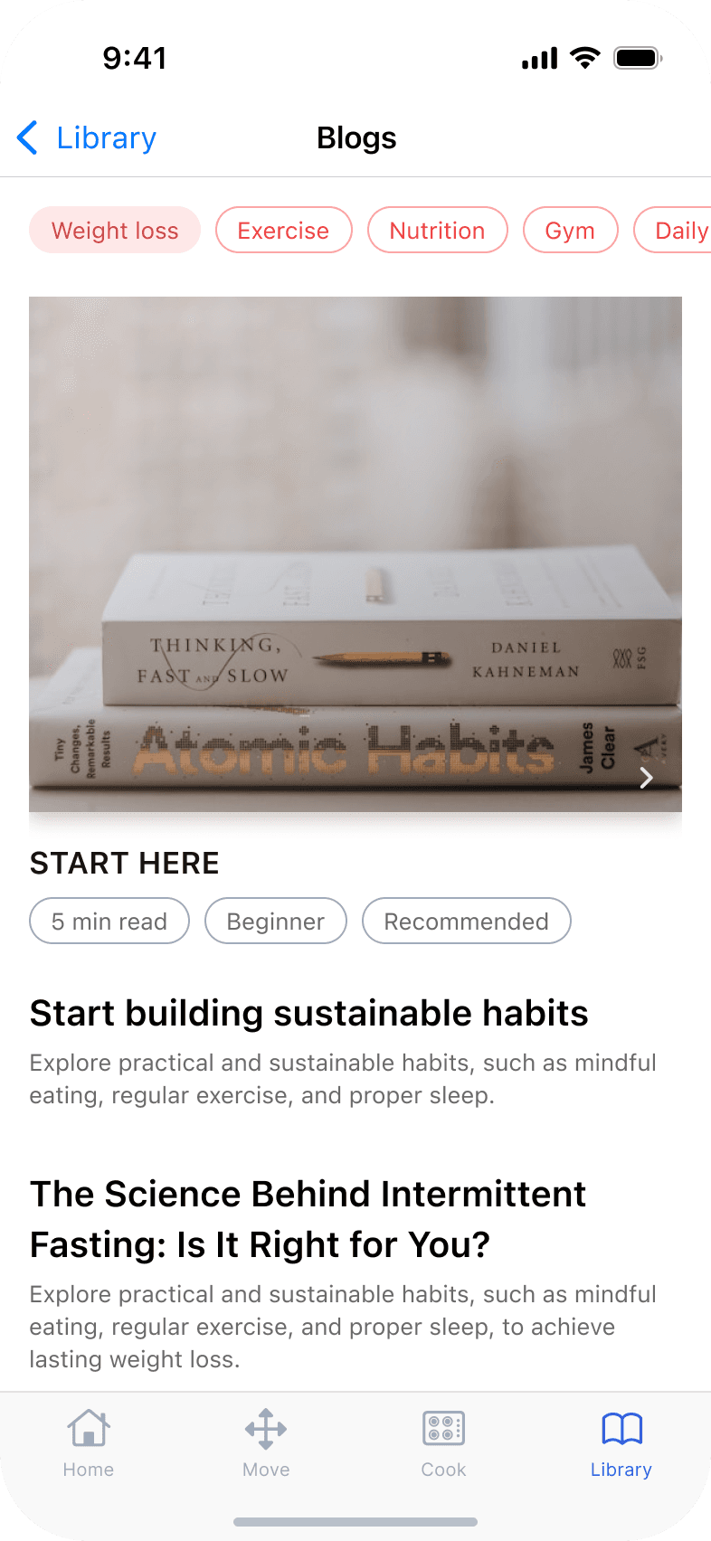 To accommodate this segment, I introduced a Blog feature in the exercise section and text-based recipes in the cooking section.
