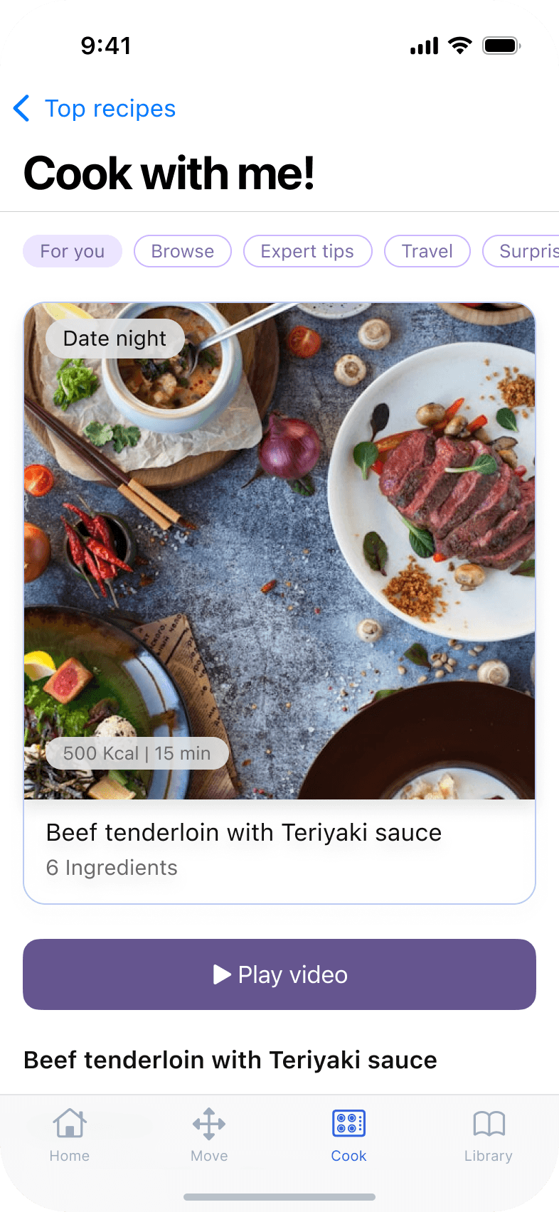 Users want to feel that they have their virtual personal chef or gym trainer for them to follow along.